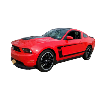 Check out the 2012 Ford Mustang Boss 302 in Competition Orange. With its 444 horsepower and 6-speed manual transmission, it is definitely an offspring of the 1969 and 1970 Boss 302.